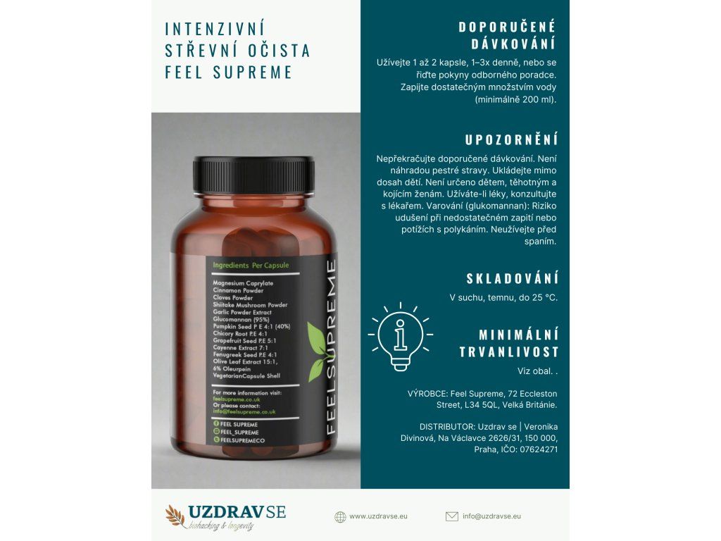 Doplněk stravy (90 kapslí); Dávkování: 1–2 kapsle, 1–3x denně (zapijte minimálně 200 ml vody); Aktivní látky: Kaprylát hořečnatý, skořice, hřebíček, Shiitake, extrakt z česneku, glukomannan, dýňové semínko, kořen čekanky, grapefruitová semínka, cayenne extrakt, pískavice a extrakt z olivového listu; Upozornění: Nepřekračujte doporučené dávkování. Není náhradou pestré stravy a zdravého životního stylu. Není určeno dětem, těhotným a kojícím ženám. Ukládejte mimo dosah dětí. Osoby užívající léky by měly konzultovat užívání s lékařem. Varování (glukomannan): Riziko udušení při nedostatečném zapití nebo potížích s polykáním. Neužívejte těsně před spaním. Skladujte v suchu a chladu do 25 °C.